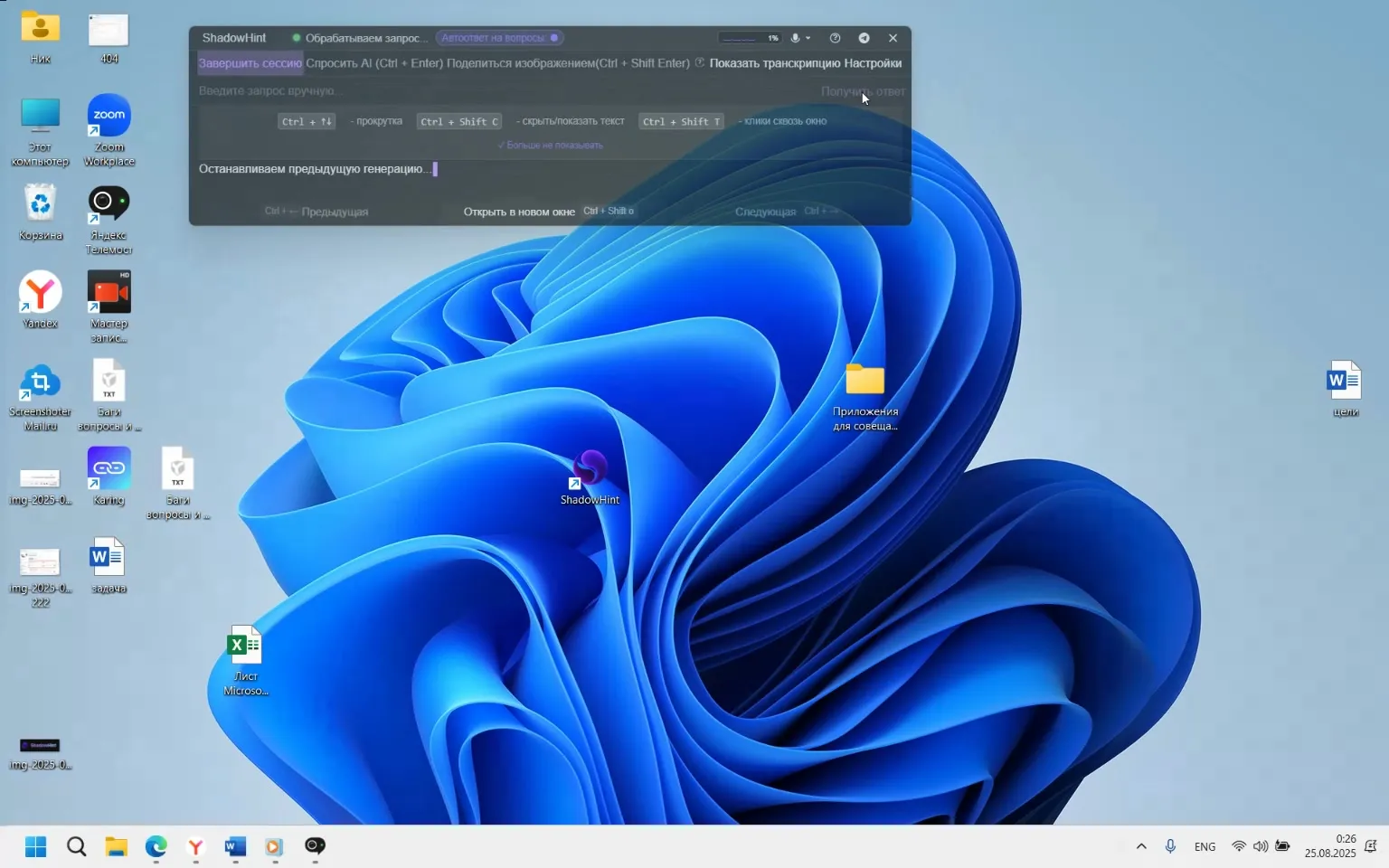 Распознаёт речь во время собеседования и активируется горячими клавишами для мгновенной помощи
